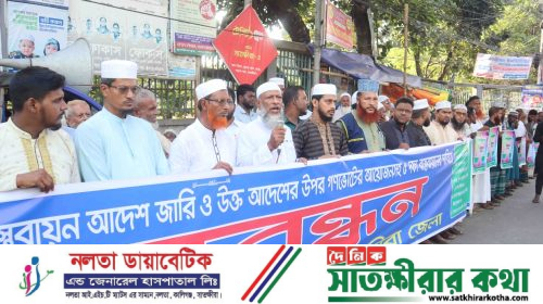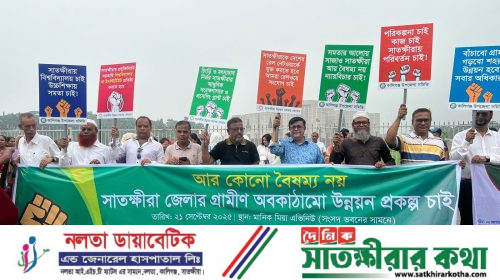 ৫ দফা দাবিতে সাতক্ষীরা ২ কিলোমিটার সড়কজুড়ে জামায়াতের মানববন্ধন