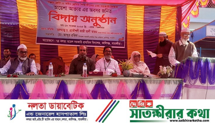 সাতক্ষীরার কালিগঞ্জ উপজেলার ৭৪ নং নলতা মডেল সরকারি প্রাথমিক বিদ্যালয়ের সহকারী শিক্ষক আয়েশা আক্তারের অবসর জনিত এবং পঞ্চম ও অষ্টম শ্রেণীর শিক্ষার্থীদের বিদায় সংবর্ধনা অনুষ্ঠান অনুষ্ঠিত হয়েছে।