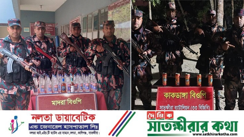 - সাতক্ষীরার সীমান্ত থেকে ১৪ বোতল মদসহ ৬ লাখ টাকার ভারতীয় মালামাল জব্দ