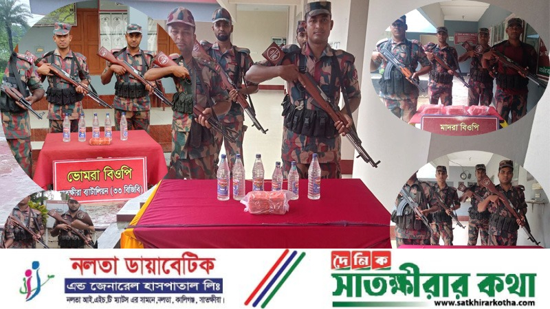 সাতক্ষীরা সীমান্ত থেকে ১১ বোতল ভারতীয় মদসহ বিপুল পরিমান ভারতীয় মালামাল জব্দ