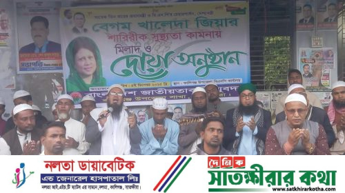 বিএনপি চেয়ারপার্সন ও সাবেক প্রধানমন্ত্রী বেগম খালেদা জিয়া'র আশু সুস্থতা এবং দীর্ঘায়ু কামনা করে কালিগঞ্জের ধলবাড়িয়া ইউনিয়নে দোয়া মাহফিল অনুষ্ঠিত হয়েছে। ধলবাড়ীয়া ১নং ওয়ার্ড বিএনপির আয়োজনে ০৮ ডিসেম্বর সোমবার জোহর…