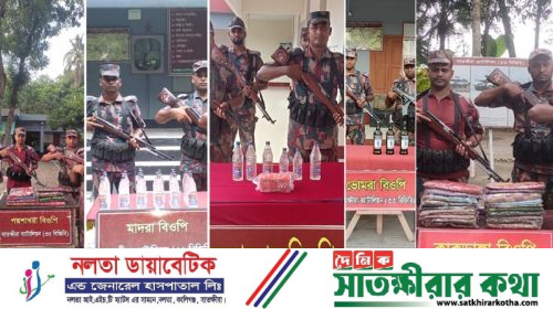 সাতক্ষীরা সীমান্তে মদসহ প্রায় আট লক্ষ টাকার মালামাল জব্দ