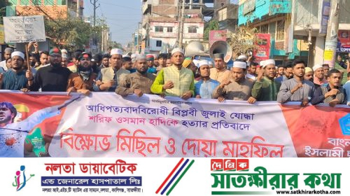 শরীফ ওসমান হাদীর মৃত্যুতে সাতক্ষীরায় গায়েবানা জানাজা ও বিক্ষোভ !!