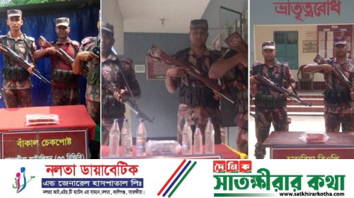 সাতক্ষীরায় ৮ বোতল ভারতীয় মদসহ ৬ লাখ ৭ হাজার টাকার মালামাল জব্দ